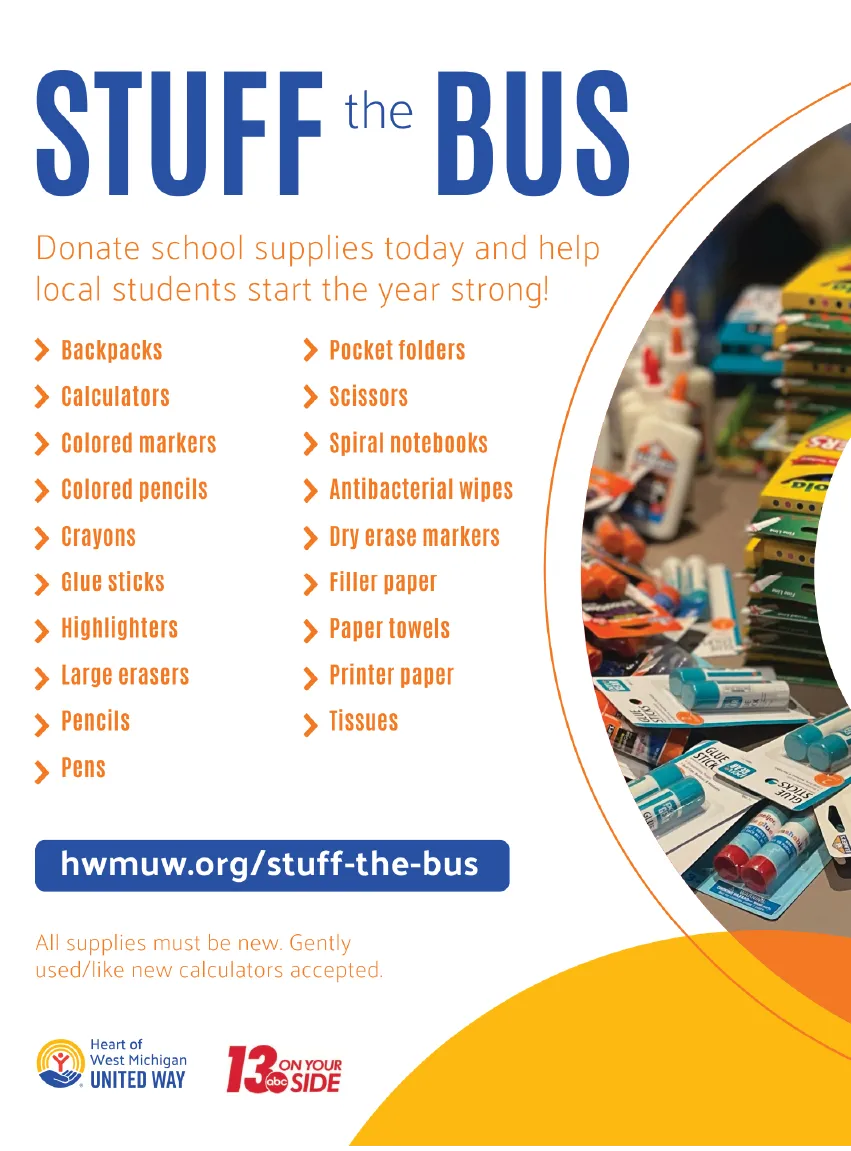 Stuff the Bus, in partnership with Heart of West Michigan United Way, ensures that thousands of students across our community have the supplies they need to thrive on day one.